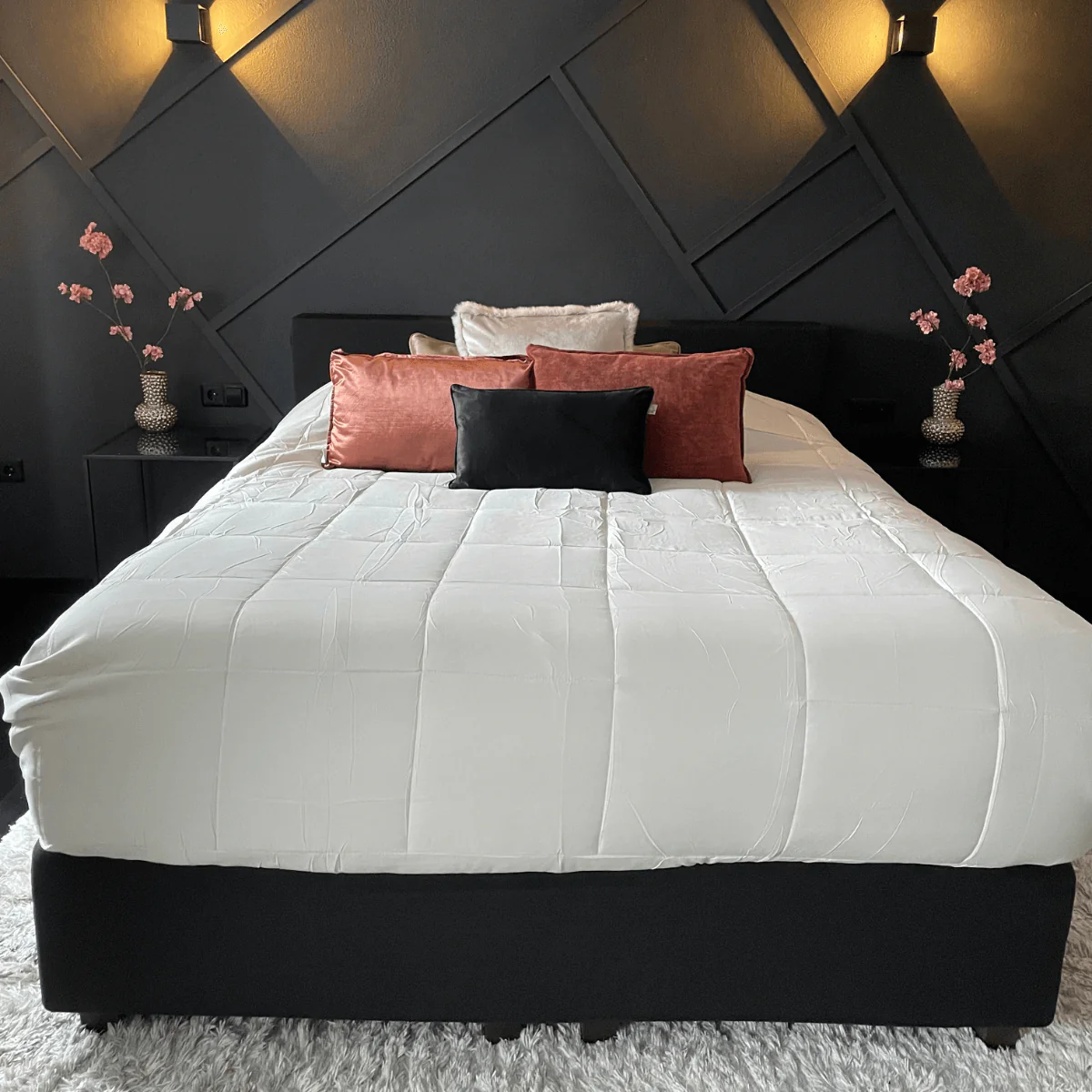 L'enveloppe en microfibre douce est lisse au toucher, tandis que le garnissage assure un climat de sommeil agréable. Retrouvez chaque soir un lit propre et frais — sans avoir à vous battre avec une housse de couette séparée.