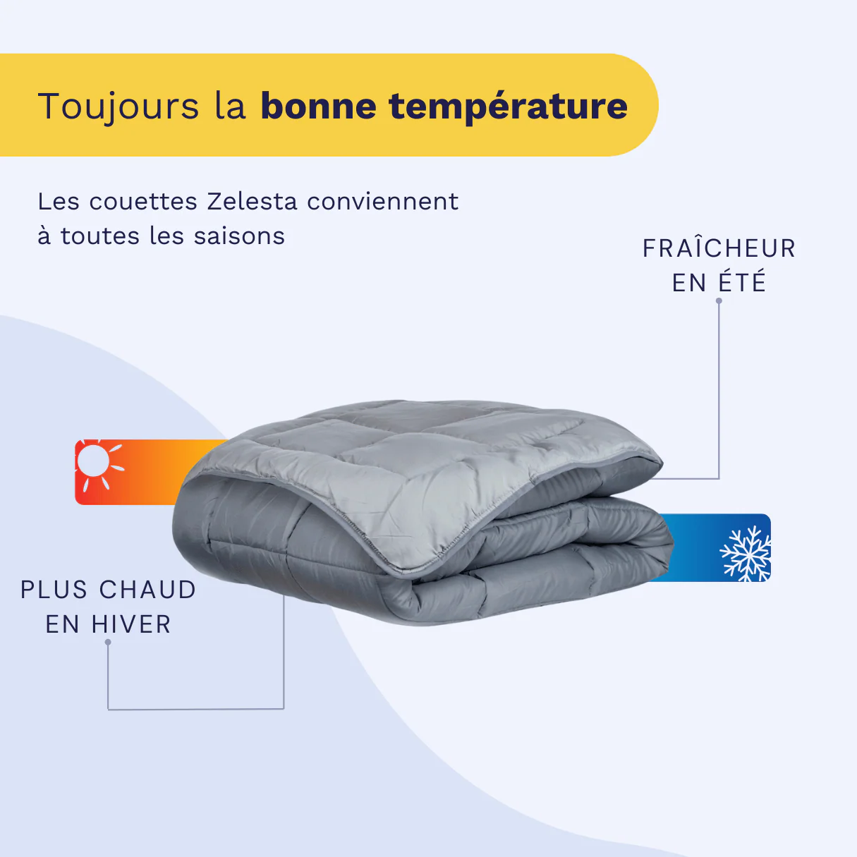 Les couettes de la ligne Everyday sont pensées pour vous faire gagner du temps et de l'énergie au quotidien. Avec leur prix attractif, elles sont idéales pour découvrir la simplicité et le confort signés Zelesta.