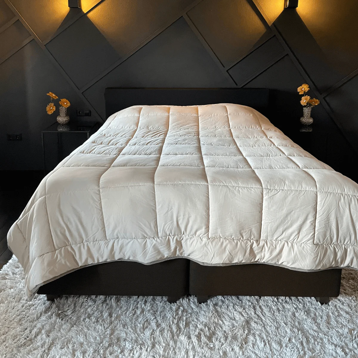 L'enveloppe en microfibre douce est lisse au toucher, tandis que le garnissage assure un climat de sommeil agréable. Retrouvez chaque soir un lit propre et frais — sans avoir à vous battre avec une housse de couette séparée.